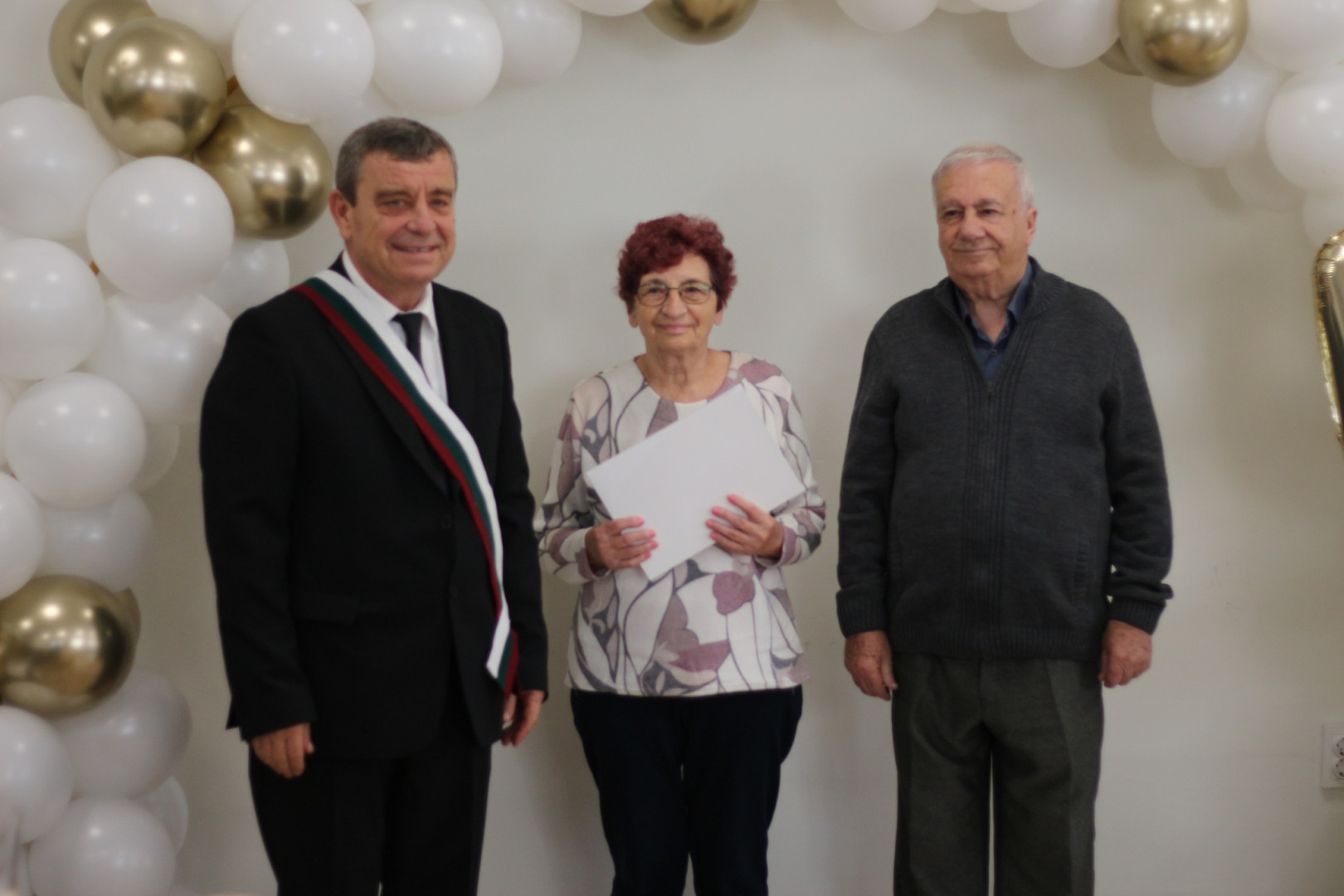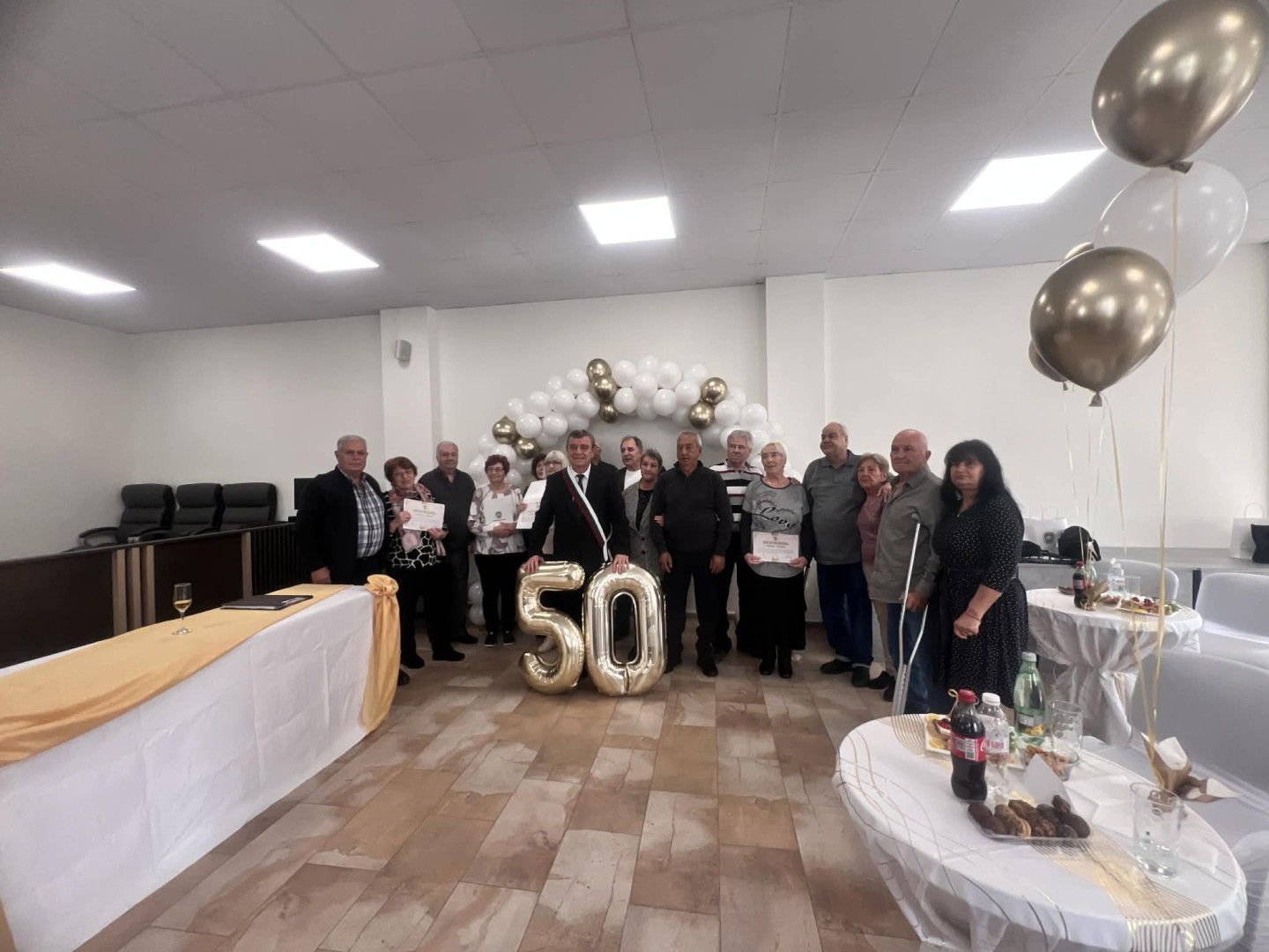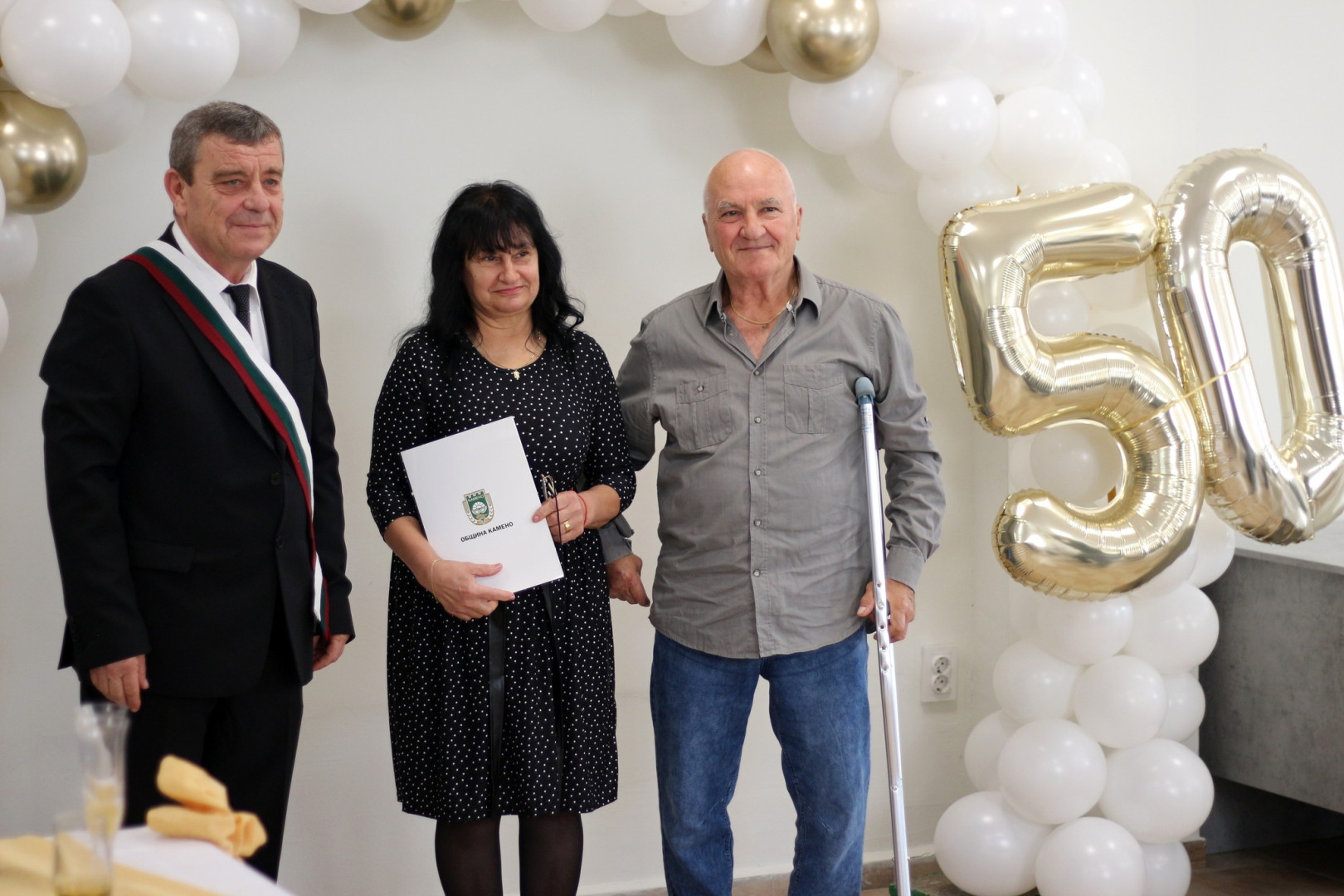 Всички гости получиха сантиментални подаръци, които да им напомнят за тази тържествена дата и удостоверения за златна сватба от името на кмета на Общината.