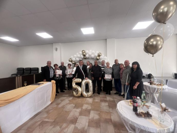 8-те семейни двойки, които празнуват 50 години съвместен живот през тази година, отново си казаха „да“ и подновиха брачните си клетви. Под звуците на сватбения марш на Менделсон те преподписаха своите брачни свидетелства, настъпиха се символично, за да решат „кой ще командва къщата“, и си обещаха още дълги години съвместен живот. След церемонията двойките вдигнаха наздравици за здраве, щастие и любов, а празникът продължи със спомени, много усмивки и тържествено настроение.
