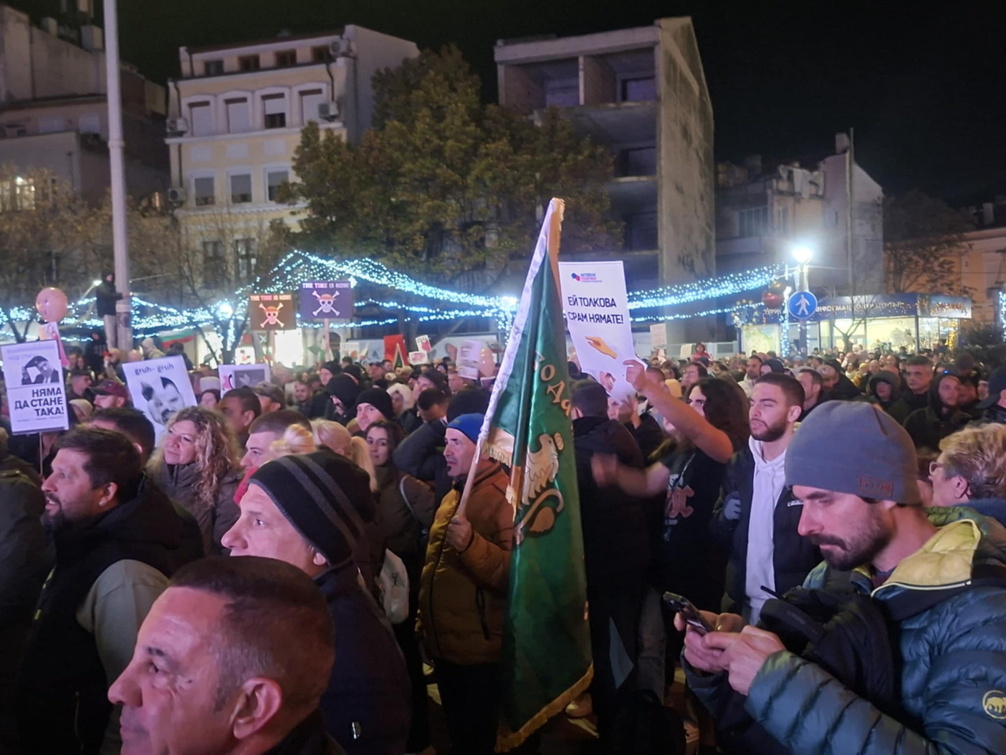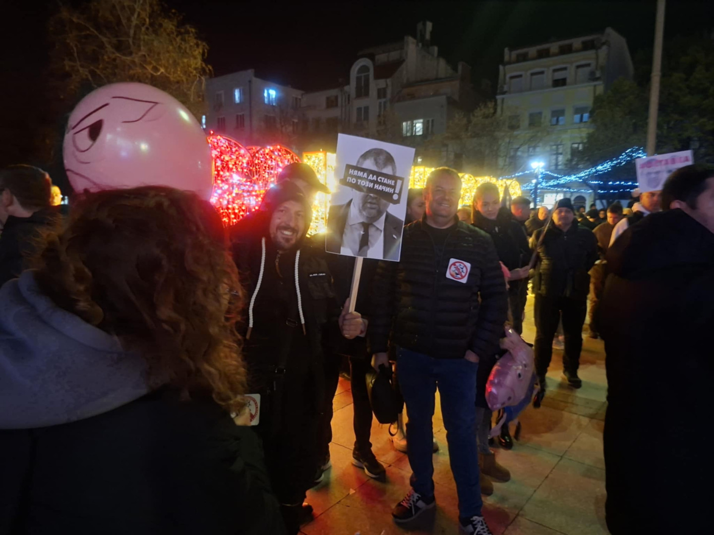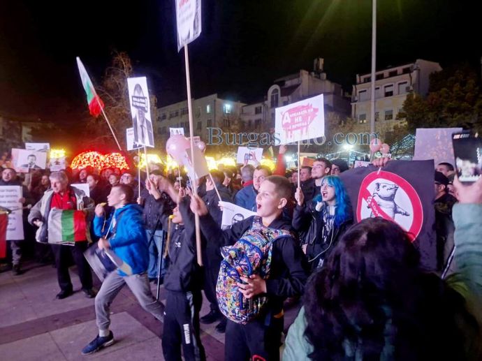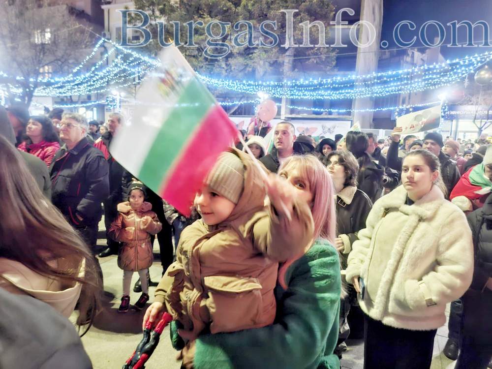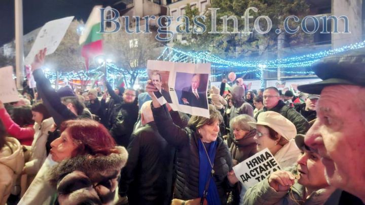 Със скандирания „Оставка“, „Мафията вън“ и набралата популярност през последните седмици песен с текст „Когато па..., когато па..., когато падне Пеевски“, с много плакати и развети знамена премина простеста срещу правителството в Бургас тази вечер. Това е вторият мащабен протест в Бургас, заедно с този, който се състоя на 1 декември. Той се проведе на площад „Атанас Сиреков“ в центъра на морския град. На видеостена бяха показани клипове и изказвания, както на опозиционни лидери, така и на представители на упрявлаващите. С възгласи „уууу“ и скандирания „Довиждане“ бяха посрещани думите на политици от държавната власт, като те особено се засилваха по време на реплики от лидера на ДПС Делян Пеевски. Имаше и плакати, сравняващи сегашния кабинет на Росен Желязков с правителството на Пламен Орешарски преди 12 години, когато също имаше вълна от протести-