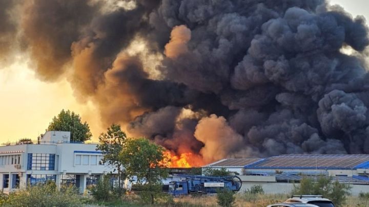 Според очевици гъст дим излиза от помещението в района на бившето предприятие "Мануела" в Източна индустриална зона, а в района се диша трудно.