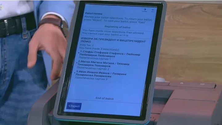 След маркиране тя се поставя в сканиращото устройство. Машината показва на екран как е разчетен вотът и дава възможност за корекция при грешка. Ако бюлетината е невалидна, например са отбелязани повече от един избор, системата не позволява тя да бъде приета.