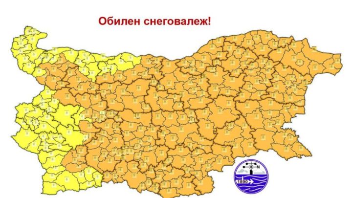 Утре (1 февруари) още сутринта от югозапад ще започнат валежи от сняг, които до вечерта ще обхванат цялата страна и в повечето райони ще са интензивни и значителни по количество. Вечерта и през нощта срещу понеделник интензивни снеговалежи ще има и в Североизточна България. Ще се образува снежна покривка, в Южна България достигаща 15-20 cm, а в Северна – до 10-15 cm. Ще духа умерен, в Източна България временно силен североизточен вятър, с който ще нахлува студен въздух. Ще има снежни виелици и навявания. Синоптиците предупреждават за опасно време втора степен и наистина обилен снеговалеж - оранжев код е в сила за почти цяла България, с изключение на Видин, София град, Перник, Кюстендил и част от Благоевград, където е в сила жълт код за потенциално опасно време.