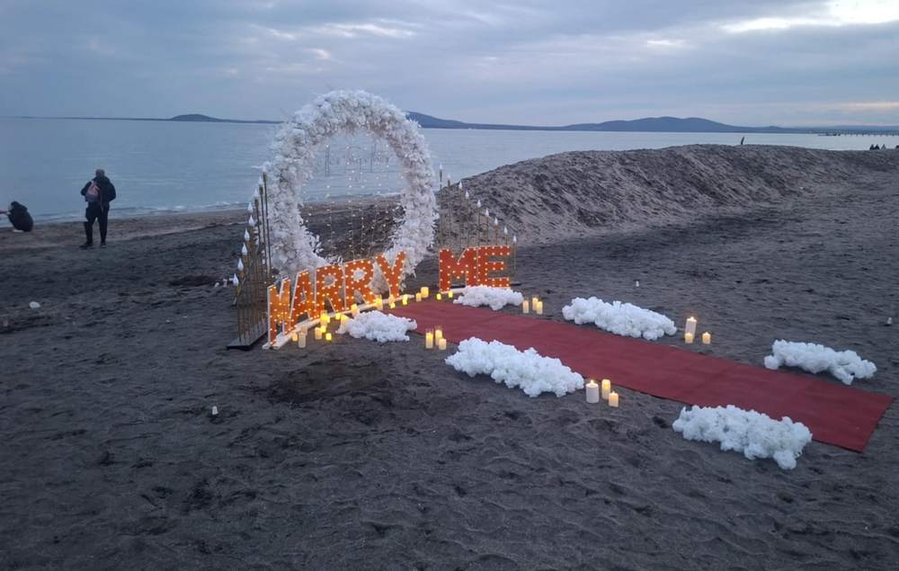 Бургас е най-добрият избор за изразяване на най-красивото чувство – любов. Днес, на 14 февруари, хората по крайбрежната алея в Морската градина бяха привлечени от красиви светлини точно на брега, в района на големия паркинг. Там десетина млади момчета и момичета се суетяха около специална арка, с червен килим и свещи към нея. Младите хора бяха изключително развълнувани. „Предстои предложение за брак. И момичето, и момчето са наши приятели, но за нея е изненадата. Чакаме ги с нетърпение.“, споделиха младежите.