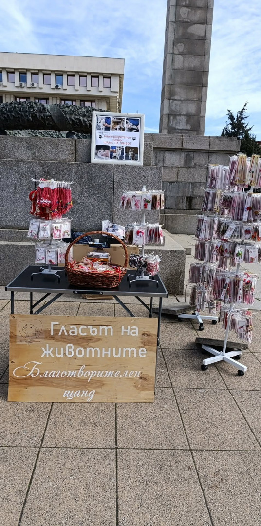 Специален щанд с мартенички се намира на площад „Тройката“ в Бургас. Там те се продават с кауза – в помощ на бездомните животинки, за да им бъде осигурена грижа и топлина. Щандът ще работи там до неделя 1-ви март включително (от 11:00ч до 17:00ч) и се намира до паметника Альоша, срещу НХК, Бургас, от страната на паметника. За всички, които все още не сте подсигурили мартенички за близките си, ще ви очакваме. Взели сме отпуск, за да можем да сме по-близо и в удобство за вас. Сами изработваме мартеничките. Единствено и само с цел да има средства за храна, лекарства и всякакви консумативи за животните, за които се грижим. Помощта идва единствено и само от вас, за което колкото и да благодарим, никога няма да е достатъчно!“, заявиха организаторите от сдружение „Гласът на животните“, което с любов се грижи за котенцата и кученцата под тяхна опека.