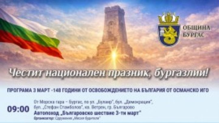 Празничната програма на този знаменателен за българската нация ден ще започне от 09.00 часа в зоната за обществен достъп на Пристанище Бургас до Морска гара – Бургас.