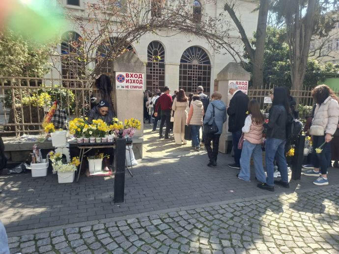 Във всички храмове в града вярващите извиха по традиция опашки, за да си вземат върбови клонки.