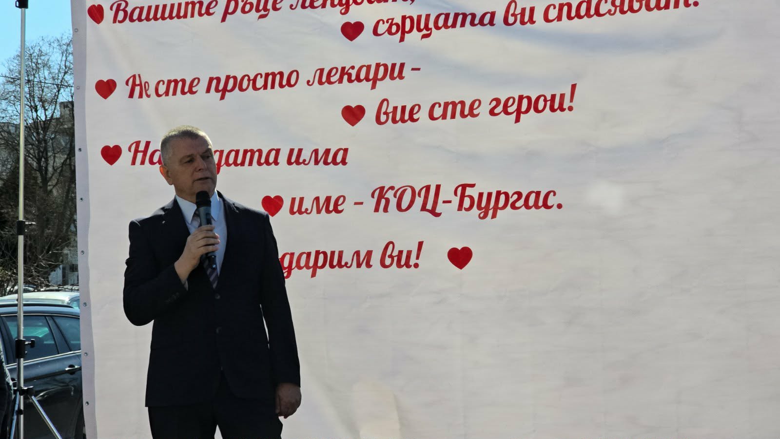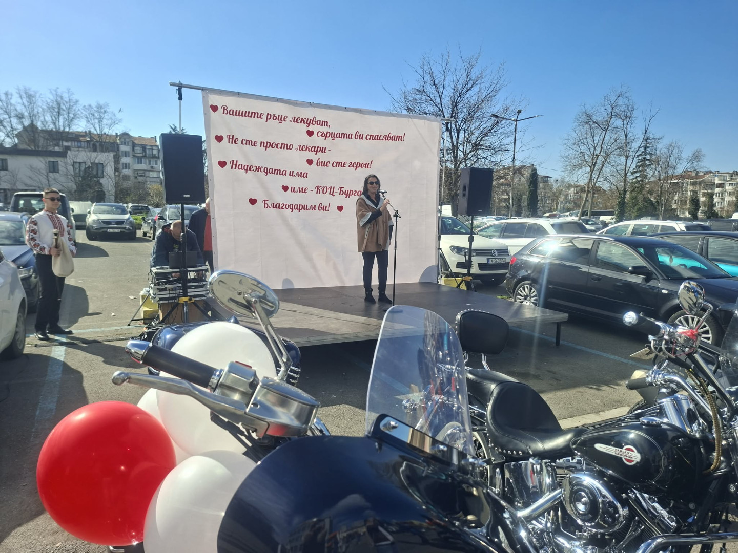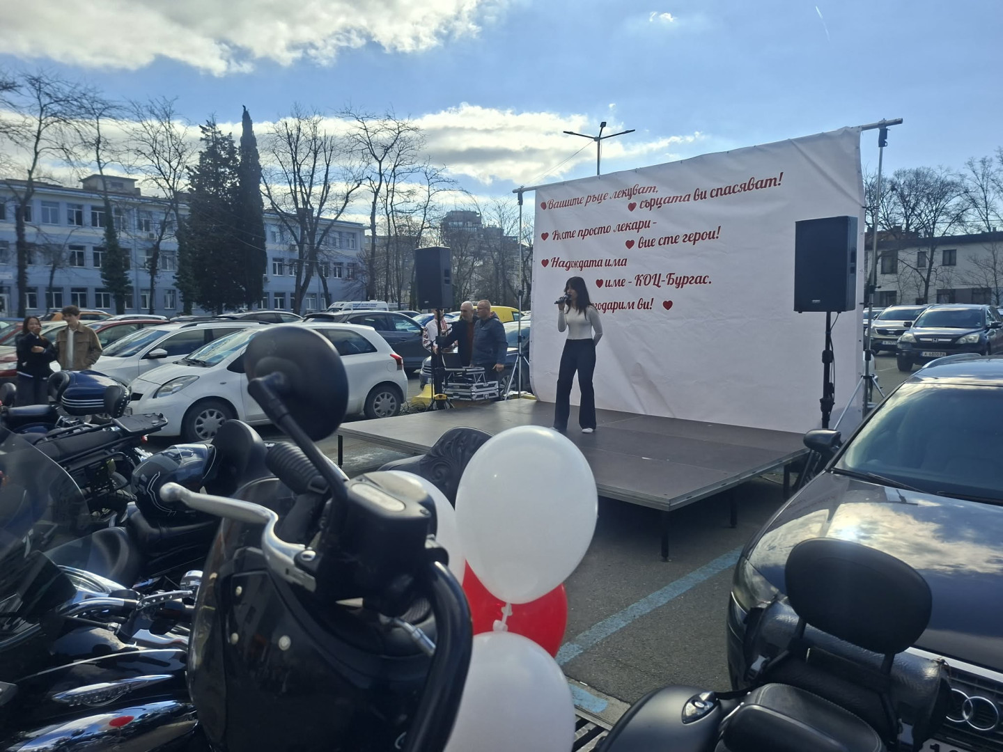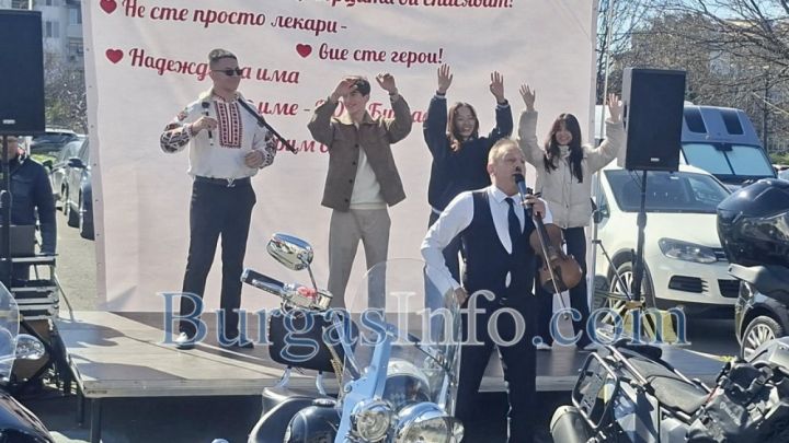 Пациенти изразиха своята благодарност към екипа на Комплексния онкологичен център в Бургас с концерт- изненада на открито. Той бе и техният поздрав по повод Деня на здравния работник. Концертът се състоя пред сградата на здравното заведение, в което се лекуват хора от цяла Югоизточна България. „Вашите ръце лекуват, сърцата ви спасяват! Не сте просто лекари, вие сте герои. Надеждата има име – КОЦ-Бургас“, беше посланието към лекарите.