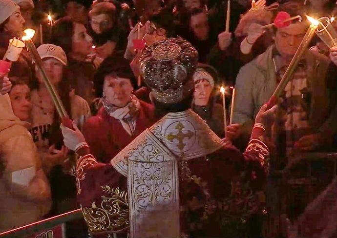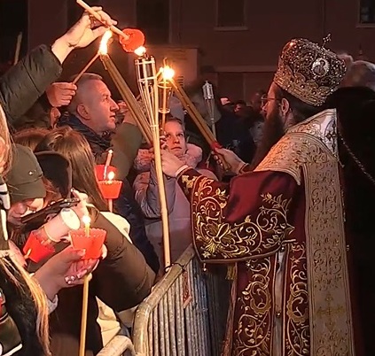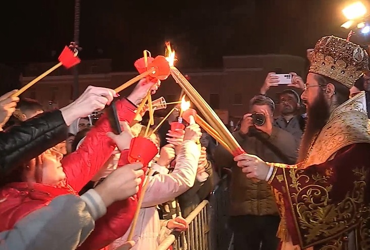 Бургас посрещна Възкресение Христово с празнична служба, във всички прославни църкви в морския град. Централната служба бе отслужена от Негово Високопреосвещенство Сливенския митрополит Арсений в катедралния храм „Св. Св. Кирил и Методий“. Точно в полунощ дронове оповестиха в небето радостната вест по негова инициатива. По традиция православните християни изпълниха площада, за да се поздравят за Великден и да отнесат част от благодатния огън в домовете си.