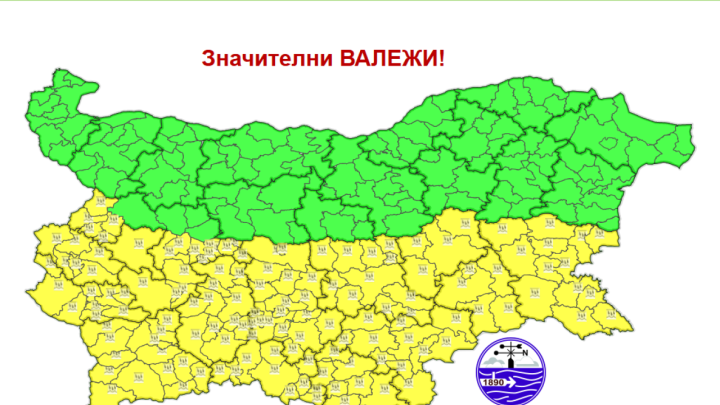 Жълт код е обявен за цяла Южна България във вторник. Това сочат данните на Националния институт по метеорология и хидрология. Предупреждението е за интензивни валежи.