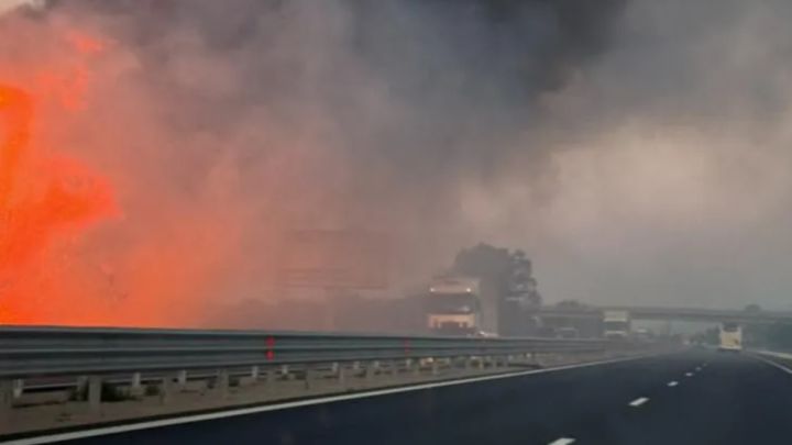 Движението се осъществява и в двете посоки, но става бавно. Едното платно е по-близо до огъня и видимостта е намалена.