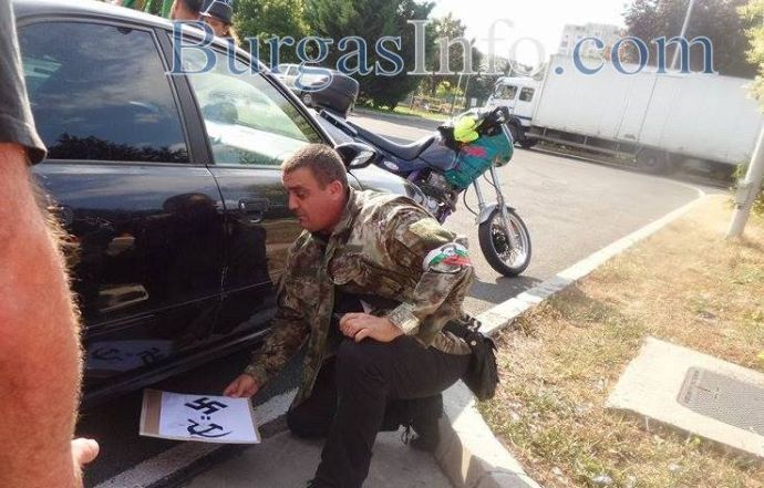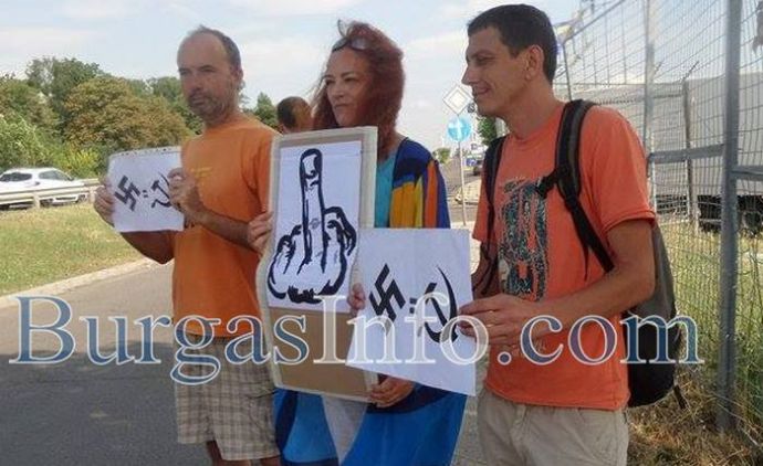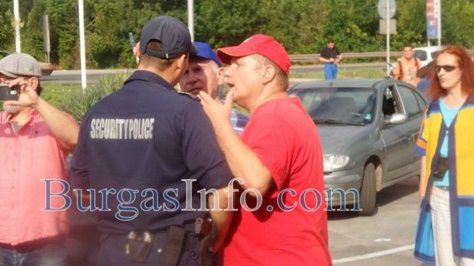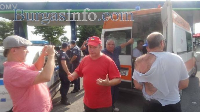 Плакат „Путин е терорист №1“ е причината за боя пред бензиностанция „ОМВ“ на изхода на Бургас между мъже с военни дрехи и украинци. Там тази сутрин, още в 6,30 часа, бяха застанали четирима украински граждани, които живеят в България, в очакване на похода на руските рокери „Нощни вълци“, които трябваше да продължат към вътрешността на страната. Те искаха да покажат на руснаците своята позиция за отношенията между Русия и Украйна и политиката, която води Владимир Путин. Сред четиримата беше председателят на „Диаспора Украйна“ в Бургас Мариан Горбан. Четиримата с много болка разказваха за преживяванията на своя народ. „Това не може да продължава повече. Путин разчита на пропагандата, а не на истината в отношенията с Украйна. Тези хора, които днес ще преминат през Бургас - „Нощните вълци“, са негови платени лица. Днес са на мотори, но утре ще облекат военни дрехи и ще отидат на война“, коментира Вячеслав, който беше в украинската група. С тях беше и Александър, както и младо момиче, което е отскоро в България. Нетърпимостта им към руското присъствие в Бургас днес се подклаждаше допълнително от факта, че в 13 часа на летището в Бургас трябва да кацнат украински деца, останали сираци при конфликта с Русия. Това накара Горбан дори да се просълзи пред репортер на "БургасИНФО", докато очакваше шествието на „Нощните вълци“. Той обясняваше, че напрежението между двата народа се отразява и в отношенията между руснаци и българи, които имат имоти у нас и които живеят отдавна тук. Това ставаше на изхода на Бургас в посока София, докато от другия край на града, откъм Созопол, влизаха моторите на "Нощните вълци".