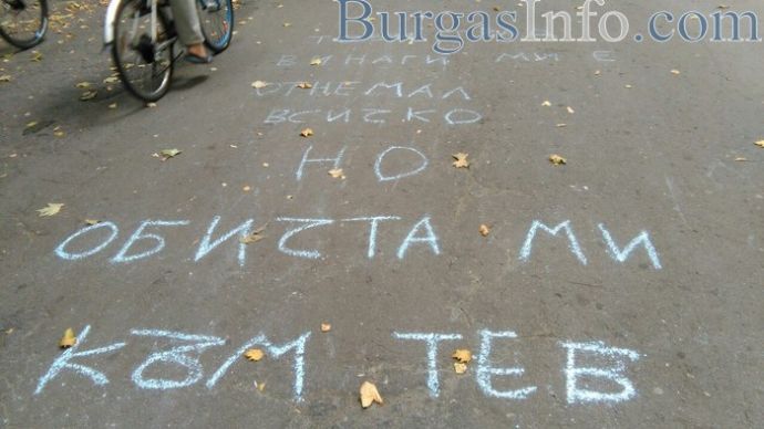 Луд от любов Ромен написа послание под формата на титри на филм за своето скъпо момиче на централата улица „Александровска“ в Бургас. То е предназначено за Мартина, чието име е изписано с огромни букви. Надписът се намира пред сградата на Стоматологията и приковава погледите на минувачите. Очевидно е, че преди влюбеният младеж да се вдъхнови за него, е имало драматична ситуация. „Този град винаги ми е отнемал всичко, но обичта ми към теб, Мартина, няма да може“, гласи посланието.