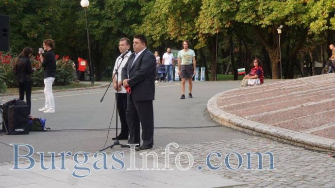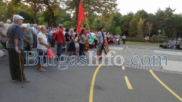 С песни, с речи, от които лъхаше носталгия към периода 1944 - 1989 г., както и с развети червени знамена на някой, от които беше изобразен сърп и чук, социалистите отбелязаха днес празника. "Дълго време някои се опитваха да очернят датата 9-ти септември. Десният преход не беше към по-добро", заяви депутатът от БСП Атанас Зафиров. Пред Пантеона дойдоха социалисти от цяла Бургаска област, както и много антифашисти.