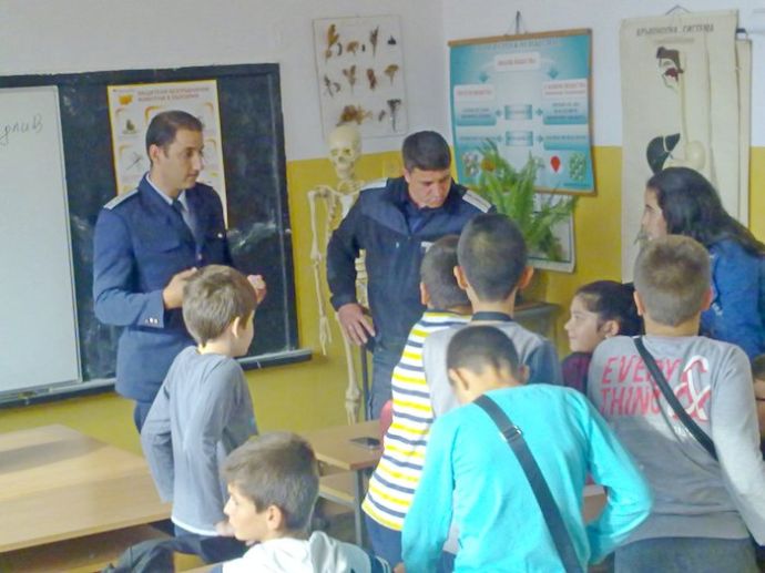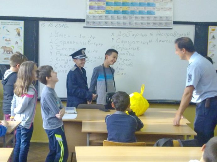 По изключително нестандартен и впечатляващ за децата начин преминаха първите две училищни занятия по програмата „Детско полицейско управление” за учебната 2016/17 г. в СУ „Отец Паисий” – с. Люляково.