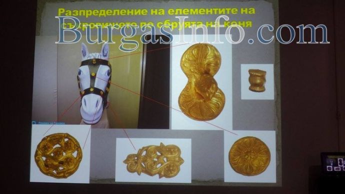 „Подобни комплекти от златни апликации са били притежание на най-богатите и знатни аристократи. Украсите на главите на конете са били използвани само при тържествени моменти от живота на траките. В гробовете те били полагани при жертвоприношение на коня, за да съпровожда своя господар в отвъдното или като гробни дарове, символизиращи изпращане на животното при господаря му. Като оригиналност на елементите съкровището от Приморско издава авторството на местен майстор, авторски продукт с висока степен на инвидуалност. То е ярка илюстрация на местната тракийска култура, свидетелства за богатствата и начина на живот на тракийските династи“, добави Пантов.