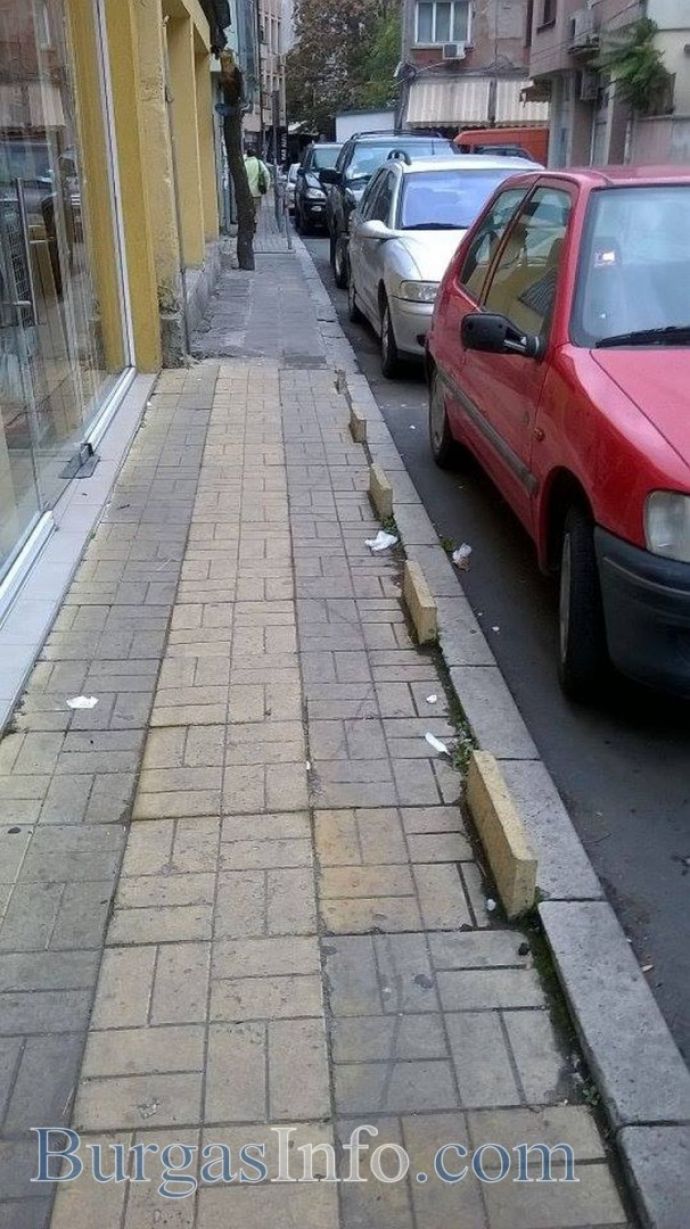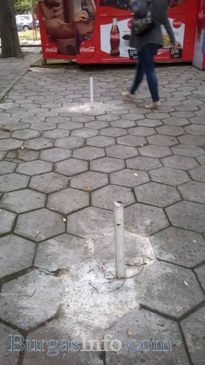 „Всички знаем, че трябва да се оглеждаме, когато пресичаме улица, но колко от нас гледат къде стъпват, когато сме на тротоара? Всеки поставя колчета, както и където си поиска, а на нас - пешеходците, ни се налага да практикуваме нова болезнена дисциплина, наречена „ходене с препятствия“, възмущава се бургазлийката Светла И. в сигнал до БургасИНФО. Тя е заснела опасностите, на които се натъкнала, там където хората не очакват заплаха - на пешеходни зони в Бургас. Самата тя се е наранявала неведнъж в тези участъци и добре знае, че те може да бъдат причина за доста болезнени преживявания.