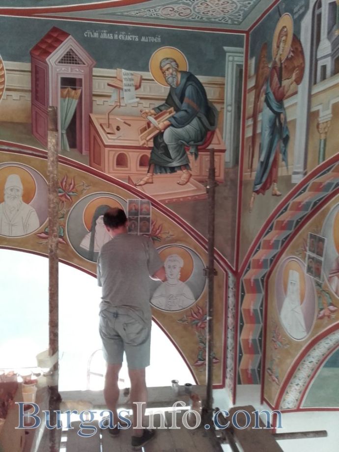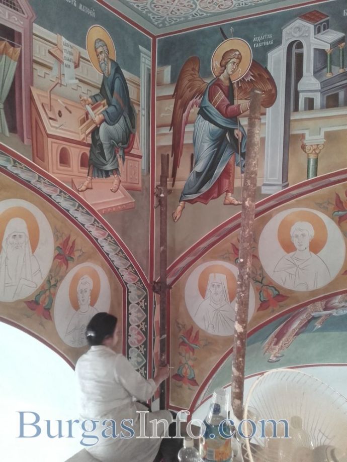 През юни 2016 г. започна и изографисването на храма. Екип от четирима зографи, чиито икони и стенописи са признати и оценени дори и от Зографската Света обител на Атон, работи и към момента. Изпод ръцете им се излива красотата и боговдъхновението на православната стенопис.