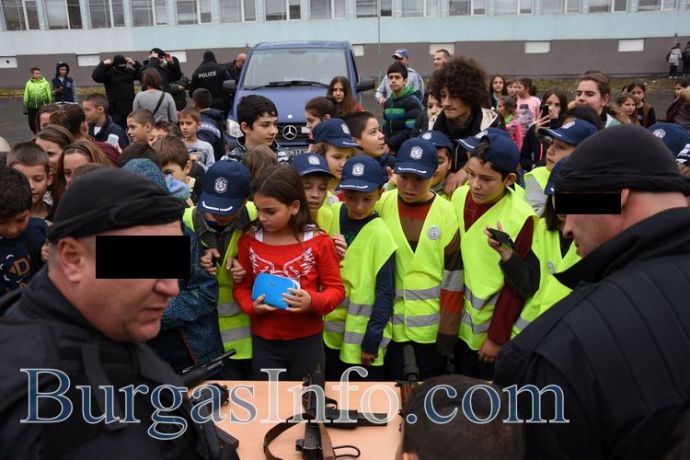 Полицаи демонстрираха своите умения пред учениците от основно училище „Петко Росен“ в ж.к. Меден рудник по случай професионалния празник на българската полиция – 8-ми ноември. В проявата се включиха доброволци от Детското полицейско управление, пред които бяха демонстрирани уменията на служителите от сектор „Специализирани полицейски сили” към ОДМВР – Бургас по задържане на извършители на престъпления с използване на полицейски техники и задържане на престъпник с помощта на служебно куче.![]()