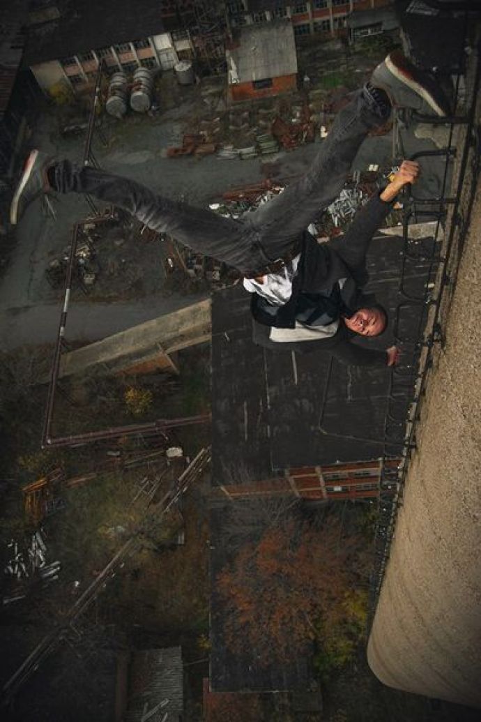 Фрийрънърът Стоян Динев, който нашумя с опасните си номера от небостъргача в „Меден рудник” и салтата от покривите на редица сгради, отново втрещи Бургас. 19-годишният възпитаник на Спортното училище този път се провеси с главата надолу от 20 метра височина, държейки се за външната страна на аварийната стълба на промишлена сграда. Въпреки смразяващата кръвта гледка, младежът се усмихва, все едно върши нещо обичайно. Под снимката, която Стоян е публикувал на стената си във facebook, има реакции на възхищение, но и на загриженост, че талантливият спортист може да пострада. Той обаче приема това с философското: „Свободата е абсолютната липса на страх” и „Няма нищо по-страшнo от самия страх”.