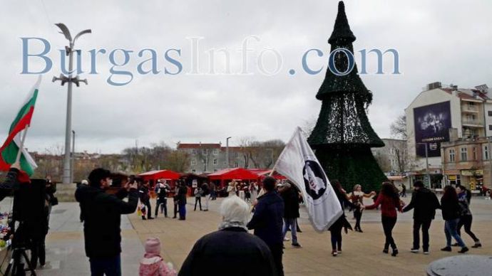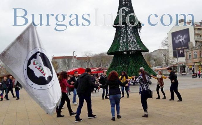 Българският дух оживи площад „Тройката“ в центъра на Бургас и тази неделя, когато младежите от Организацията за закрила на българските граждани подеха хорото, което превърнаха в традиция за морския град. Десетки бургазлии днес се хванаха на право хоро около Елхата, която вече се извисява на площада. Българското знаме и народните ритми създадоха патриотично чувство у минувачите, излезли в неделя на разходка.