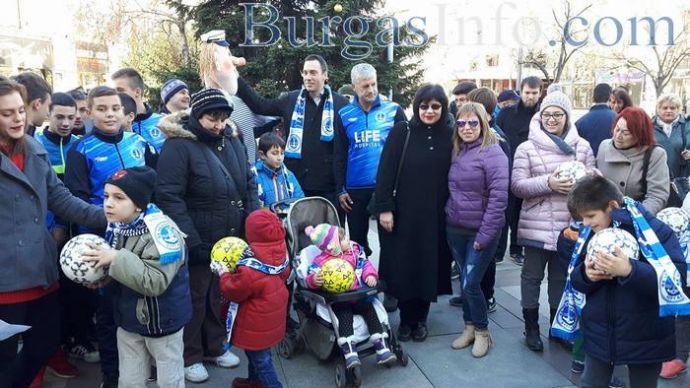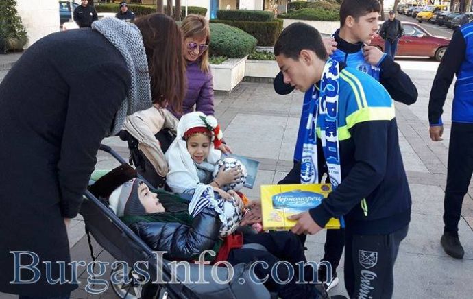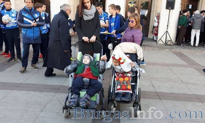 Пред сградата на Община Бургас те бяха посрещнати от малките футболисти от детско-юношеската школа на „Черноморец“, които ги зарадваха с топки и шалчета на отбора. Сред тях беше и кметът Димитър Николов, който ги поздрави и подчерта радзбирането и дейността на родителите за осигуряването на достъпна среда за хората с увреждания в града.