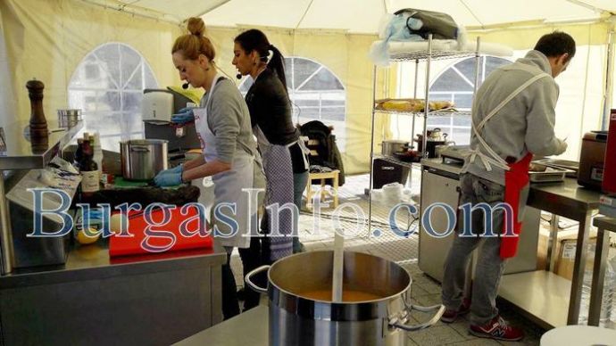 Известните шеф готвачи творят кулинарни шедьоври в специално пригодена шатра, оборудвана с професионална мобилна кухня. Те ще бъдат на площада до 15:00 часа.