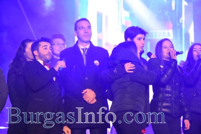 Хиляди бургазлии бяха като в бяла приказка тази вечер, когато на площад „Тройката“ грейна най-красивата елха в страната. С много настроение пред бургазлии светлините запали кметът Димитър Николов, заедно с трима ученици-отличници - Георги Бошев, Марина Бояджиева, Камен Велев, с които Бургас се гордее. „Пожелавам на всички успех, защото вашите успехи са успехите на град Бургас! Бургас е млад, жив град, град с бъдеще. А това е най-красивата елха в България“, заяви пред внушителното множество кметът Димитър Николов.