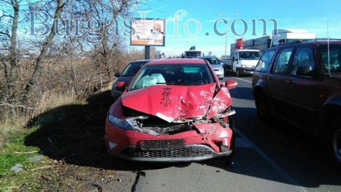 Шофьор на леката кола „Пежо“ е 47-годишен бургазлия, другите две пострадали коли са „Мерцедес“ и „Хонда Сивик“.