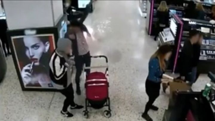 Охранителните камери са заснели мъж, който разговаря с приятел в магазин в търговски център в Лийдс.