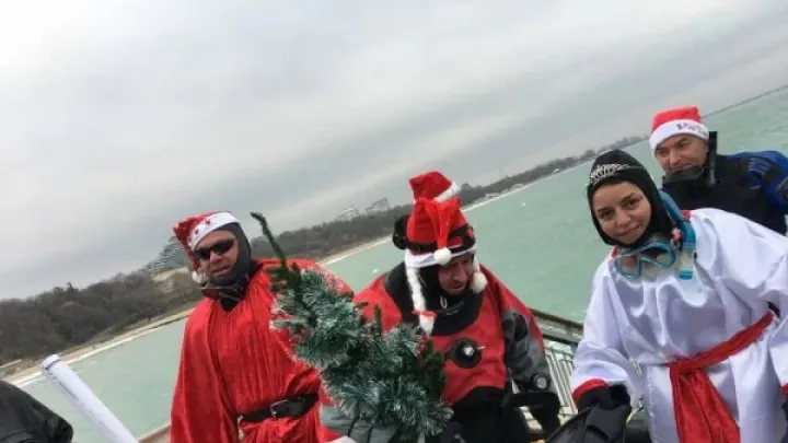 Най-авантюристичният Дядо Коледа живее в Бургас. Днес той, заедно със Снежанка и цяла група джуджета – водолази смело скочиха от кея на бургаския мост, за да търсят подаръци за малчуганите в морето.