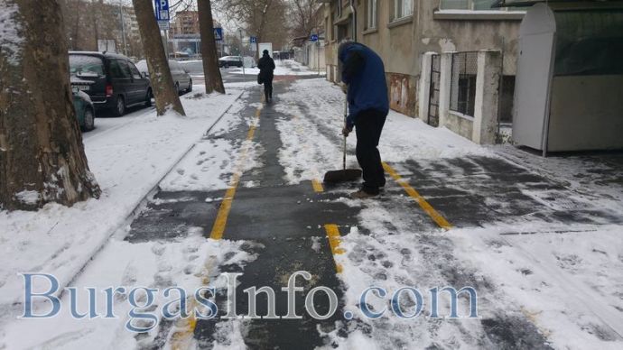 Улиците в Бургас са чисти и проходими, видя репортер на БургасИнфо. За разлика от снежния капан в областта, тук снегът е малко. Служители на снегопочистващите фирми чистят тротоарите. Хората също измитат пред входовете на сградите и търговските обекти.