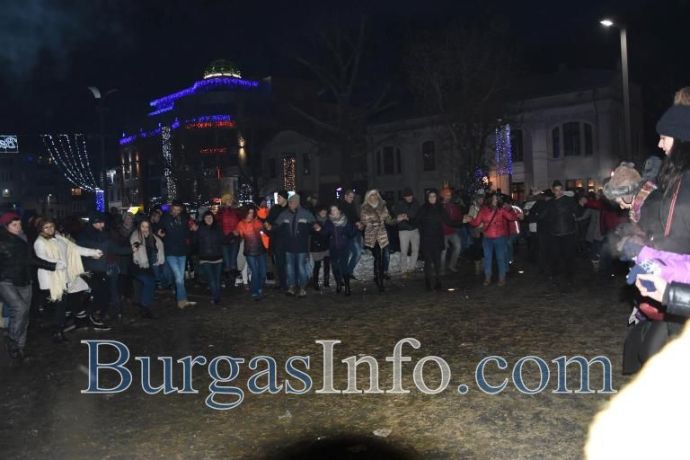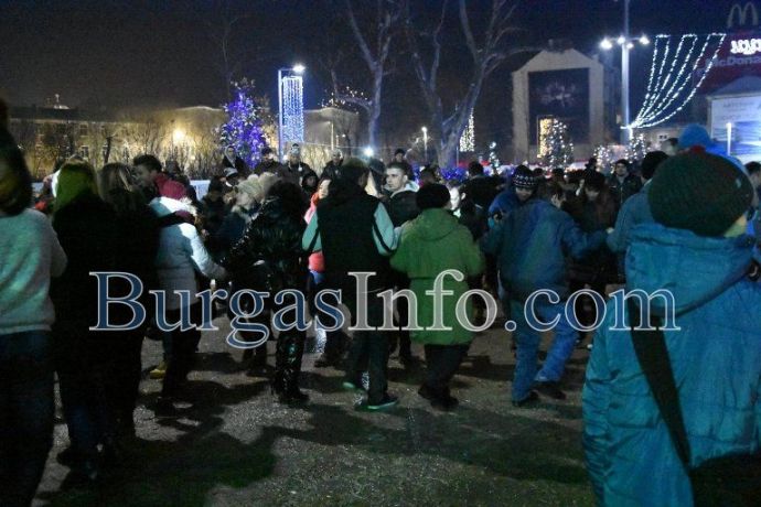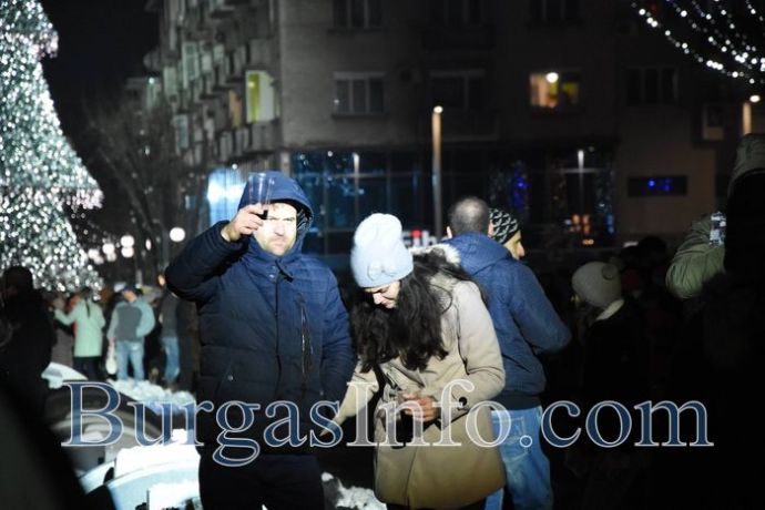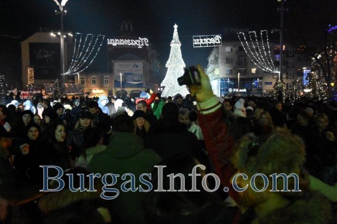 Въпреки студа, хиляди бургазлии спазиха традицията и се събраха на площад „Тройката”, за да отброят заедно последните секунди на старата година и да посрещнат новата. 2017-та дойде с пукот на десетки тапи от шампанско, звън от наздравици, блясък на усмивки и тропот на кръшно хоро. На него се хванаха стотици бургазлии, които наблюдаваха пищната заря, озарила небето над града. От новогодишната сцена поздрав отправи зам.-кметът по култура и образование Йорданка Ананиева.