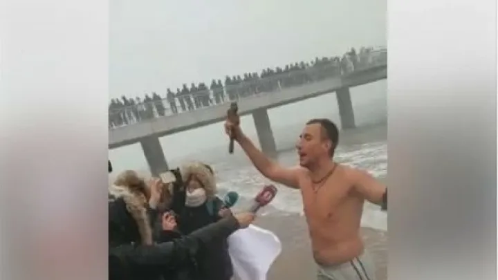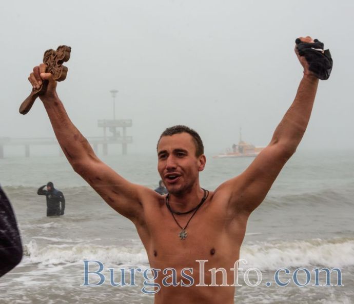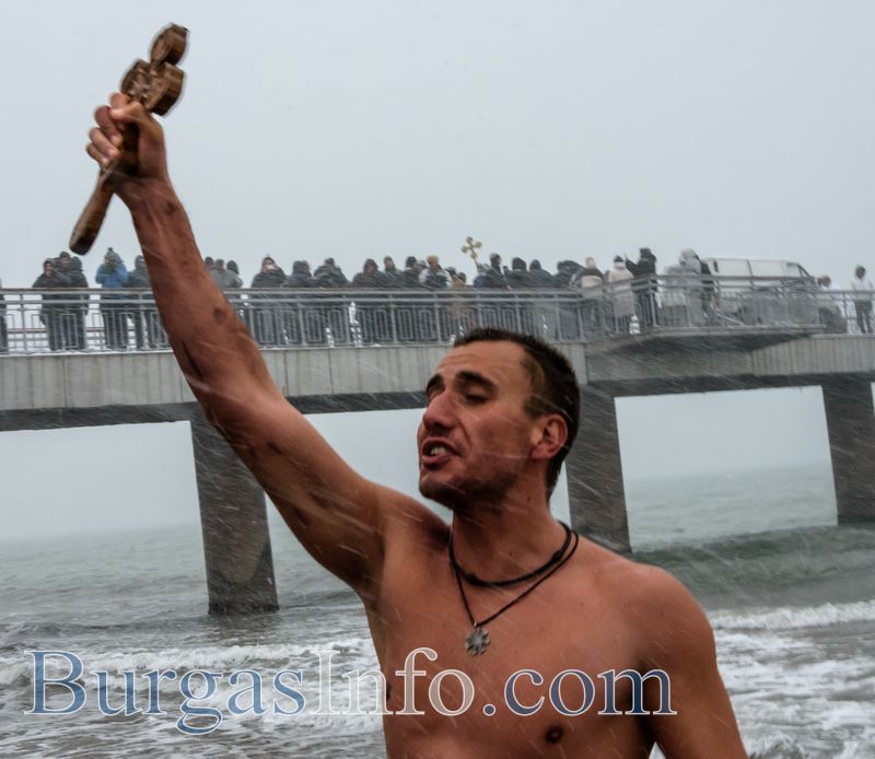 32-годишният Диян Чанев Янев спаси светия кръст днес на Богоявление в Бургас.