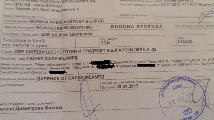 „Скъпи приятели и съграждани, искам да ви благодаря затова, че бяхте с нас в този труден за семейството ни момент. Благодаря ви, за дарените средства, с които успяхме да приберем нашият син Салих от далечна Англия. Събраната сума беше по-голяма от необходимите средства. Предназначението им бе за благотворителната помощ, която ние получихме. Останалата част, семейството ни реши да приведе в набирателната сметка "Дари бъдеще за Марина" - акция за младо момиче, което има нужда от средства за лечение в Германия“, обяви майката на Салих - Анифе Мехмед.