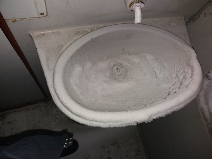 Сняг, замръзнали мивки, солидна снежна покривка са екстрите във влака Бургас-София, който в момента пътува към столицата. Снегът е по пода, край прозорците в тоалетните на вагоните първа класа, съобщиха бургазлии, пътуващи в композицията. На фона на зимната обстановка във WC-то особено освежаващо изглежда новата ролка тоалетна хартия. Тя стои недокоснота, но вероятно ще си остане и такава, предвид солидната снежна покривка над нея.