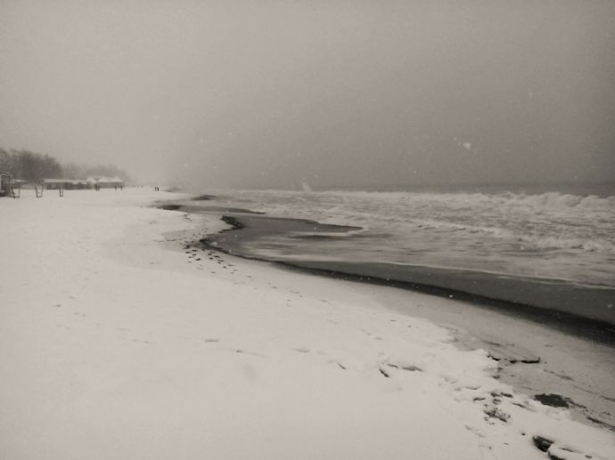 „Гледката е сюрреалистична -снегът изцяло е покрил пясъка, а снежинките се топят във вълните. В далечината, пък се виждат черни силуети, след които остават замръзнали стъпки”, споделиха бургазлии, които в съботния ден не пропуснаха разходката на любимото си място. Белият плаж се превърна във вдъхновение за фотографите, които могат да запечатат рядката гледка.![]()