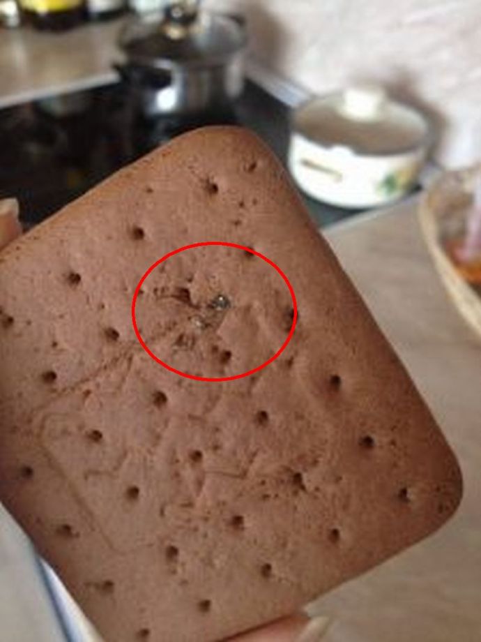 „Видях странни изменения в структурата на една от бисквитите в пакета и при разчупването и буквално останах потресена“, разказва тя.
