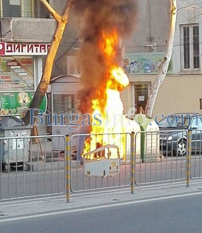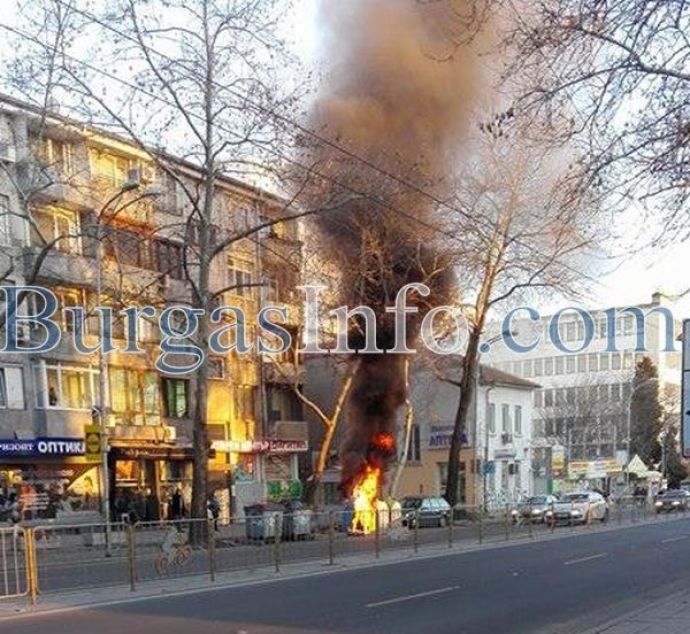Черен дим обърна центъра на Бургас. Източник на пушека, който се носи по булевард „Стефан Стамболов”, са горящи контейнери за разделно събиране на отпадъци, които се намират в близост до автобусната спирка срещу БСУ.
