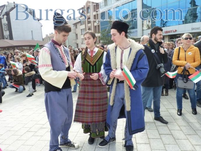 Стотици революционери, възрожденци, опълченци и хайдути оживяха на площад „Св. св. Кирил и Методий”, за да върнат бургазлии в момента на съзаклятието на членовете на революционните комитети и полагане на т.нар. Народна клетва на Васил Левски. Те пресъздадоха героичните епизоди от българската история под развети трибагреници и пред погледите на стотици бургазлии.