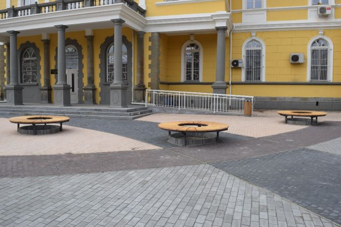 Ремонтните работи по обновяване на площад "Жени Патева", който се намира непосредствено пред Стария съд, са към своя край. Днес работниците положиха тревно покритие около новите алеи, а предния ден монтираха осемте подземни контейнери за разделно събиране на отпадъци, които са разположени в двата края на площада.