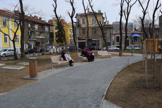 Алеите също са завършени, а на тях са поставени новите пейки и кошчета. Напълно готова е и детската площадка с нови катерушки, която се намира по средата на площада. До нея са разположени две дървени беседки. Поставено е енергоспестяващо осветление. Ще има видеонаблюдение на ключови места, за повишаване сигурността и намаляване случаите на вандализъм.