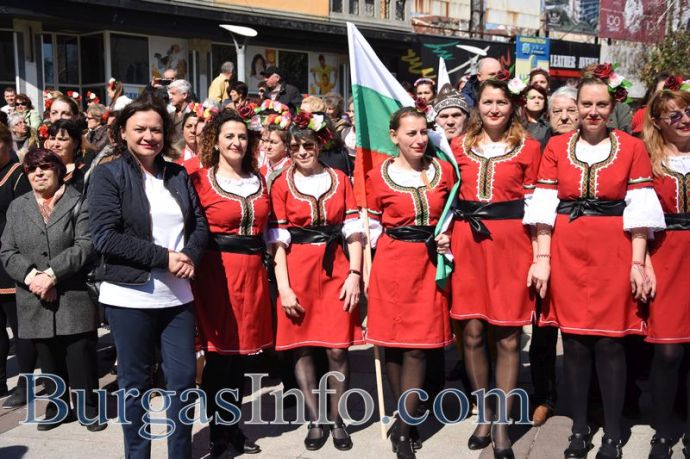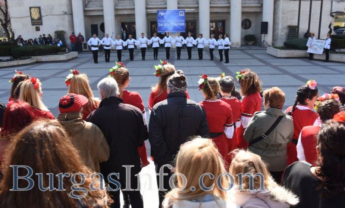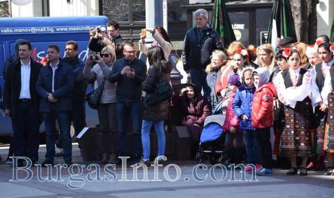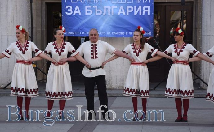 В 11.00 часа водачът на листата на ГЕРБ за Бургас Ивелина Василева поведе първото общо хоро на площада, а до нея бе бившият министър на енегретиката Делян Добрев. Към хорото се присъединиха и кандидат-депутатите Диана Саватева, Диана Йорданова, Димитър Бойчев, Иван Вълков, Жечо Станков, както и всички любители на българските народни танци. След което всеки от съставите представи своите най-атрактивни хора в два тура. Идеята е по този начин да се популяризират българските традиции.