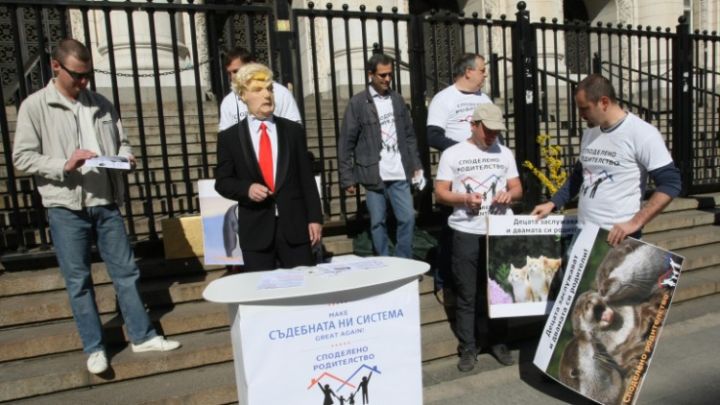 На протеста пристигна и човек, имитиращ Доналд Тръмп. Сивмоликата била, че както той иска да направи САЩ велика, така и нaшето правосъдие ще стане велико, ако съдът направи децата щастливи.