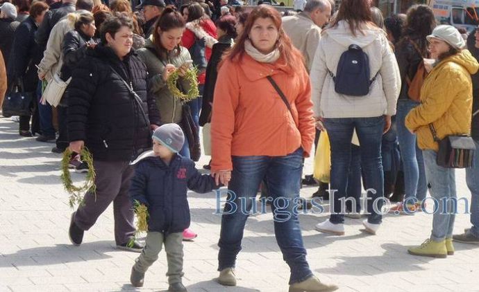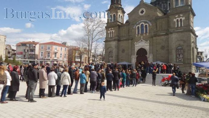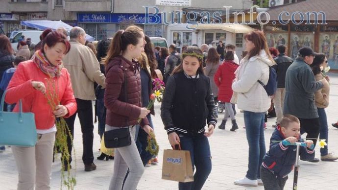 Хиляди бургазлии извиха колони пред църквите в морския град, пролетни цветя, върбови клонки и усмивки превзеха центъра навръх християнския празник Цветница, който отбелязваме днес. Въпреки километричните опашки, хората бързо преминават по реда си, за да вземат върбовото клонче и да запалят свещ за здраве. Пред храмовете е заредено и с пролетни цветя, сред които най-търсени са нарцисите, лалетата и зюмбюлите. На площад „Св. Св. Кирил и Методий“ допълнително празнично настроение създава и фолклорната програма, която започна в 12 часа.