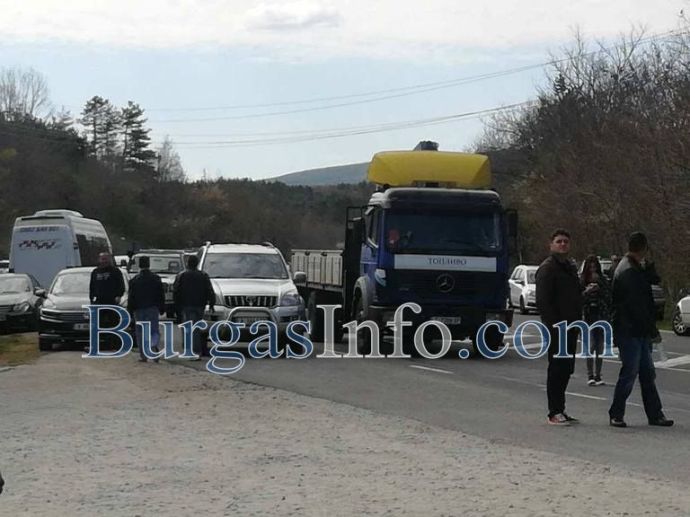 Шосето е напълно блокирано като потестиращите пропуснаха единствено линейка. Полиция е отцепила района.