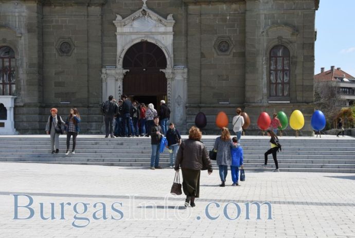 Дълги опашки от миряни се редят пред църквите в Бургас, за да преминат под Плащеницата Христова на Разпети петък. Богомолците влизат по няколко души в храма, палят свещ за здраве и опрощение на греховете и минават под масата с Плащеницата. После се покланят пред големия кръст, символизиращ гроба на Иисус Христос. Очаква се потокът от хора да не секне до късния следобед.