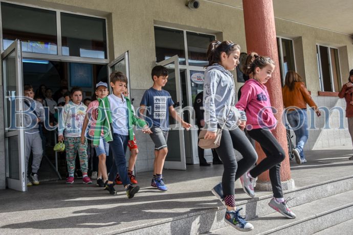 Само за 3 минути 688 ученици и служители напуснаха сградата и отведени на безопасно място в двора на училището.