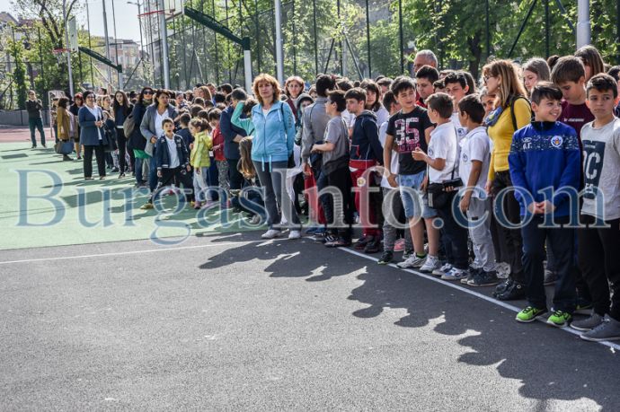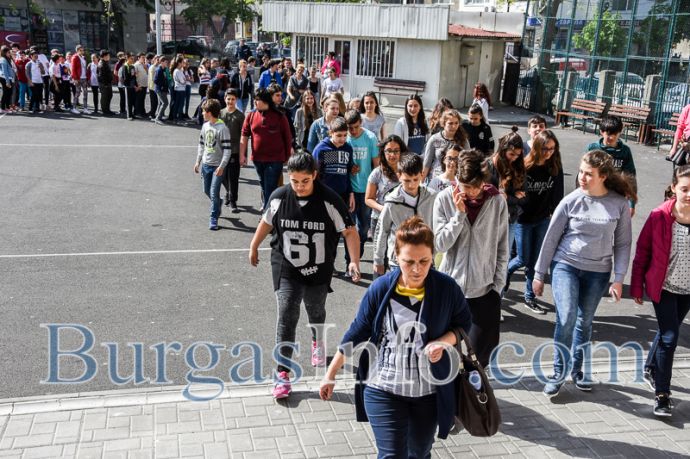 Малко преди да бие звънеца за междучасието в 9,45 часа днес, в ОУ „Васил Априлов“ бе дадена тревога за получен сигнал за бомба в района на учебното заведение. Изненадващата, но планирана евакуация бе демонстрационно занятие, организирано от ръководството на ОУ „Ваасил Априлов“ съвместно с ОД на МВР – Бургас.