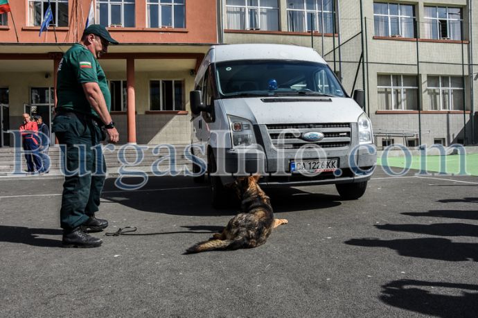 За по-малко от една минута немската овчарка Роки успя да локализира бомбата, скрита в бус, паркиран в двора на училището, като показа това с пасивна команда лягайки на земята. Отлично обученият Роки е само на година и 10 месеца, но вече служи в Гранична полиция към бургаското летище. До сега не е откривал истинска бомба, а неговият водач пожела това никога да не се случи.