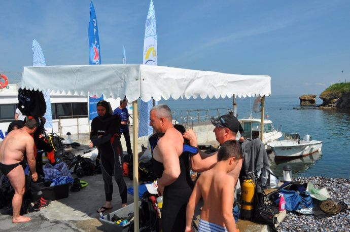 Днес водолазите от клуб "Приятели на морето" се гмурнаха в близост до остров Света Анастасия за почистване на морското дъно. Те извадиха и първата реколта миди от естествената подводна ферма, които посетителите опитаха съвсем безплатно. Сред ръководителите на "операцията" по вадене на морските дарове бе и юристът Стефан Цинцарски, който е запален водолаз.